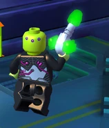 Brainiac is seen throughout the storymode isolated within his spaceship. He kidnaps the lanterns in order to use their power to shrink planets into miniature size.